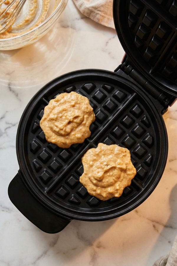 Spoon a small amount of batter into the waffle maker (about 2-3 tablespoons, depending on the size of your waffle maker). Close the lid and cook the waffles for 3-5 minutes, or until they are golden brown and firm. Each waffle maker is different, so keep an eye on them as they cook.