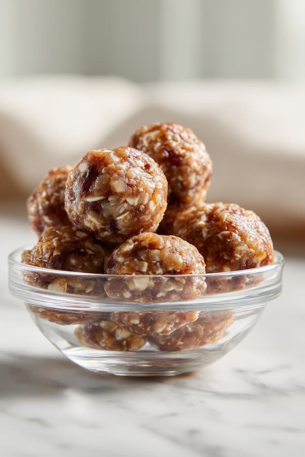 Using clean hands or a cookie scoop, portion the mixture into 1 to 1½ inch balls. Roll each portion between your palms to create smooth, uniform spheres. Consistent sizing ensures even storage and serving portions.