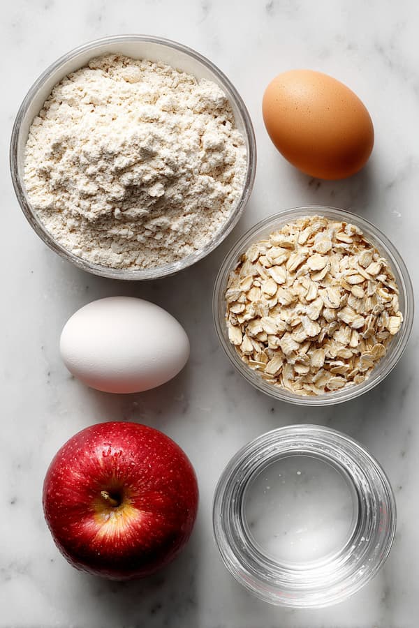 In a large mixing bowl, toss in your grated apple, the quick oats, and the whole wheat flour. Give it a quick stir to coat the apple strands in flour (this helps prevent clumping).