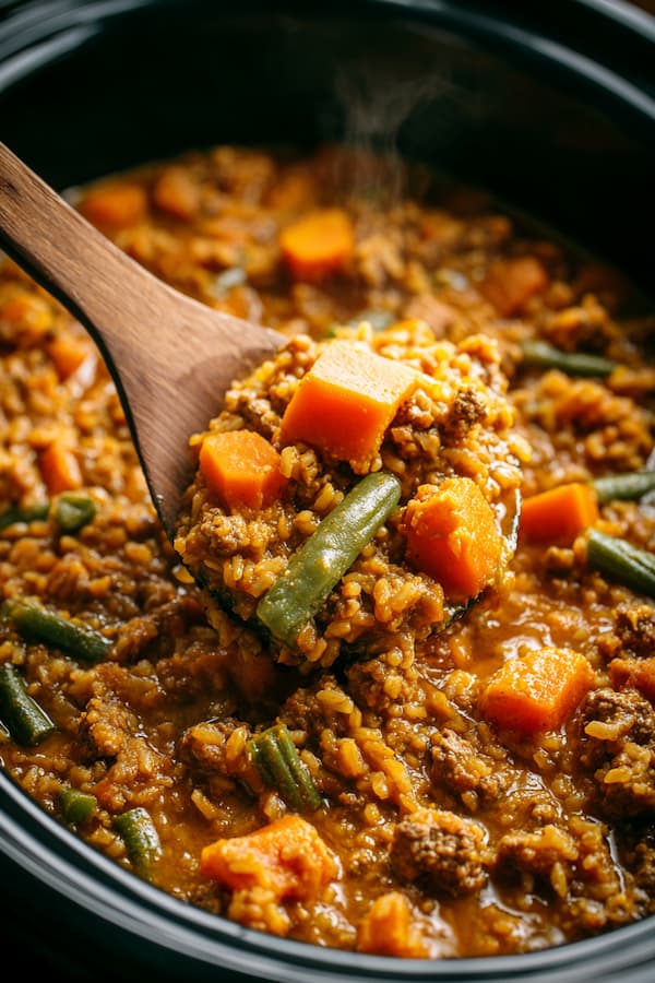 Beef & Pumpkin Stew in a slow cooker