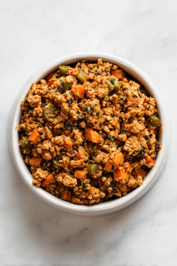 Turkey & Oat Bowl with Sweet Potato in a dog bowl