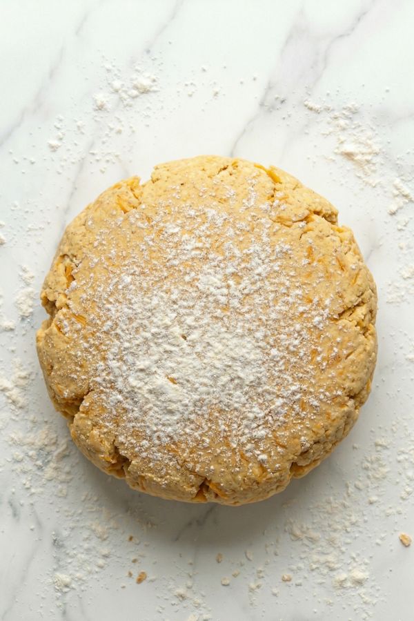 The cheese will be in visible shreds throughout the dough. That’s fine. It melts during baking and binds everything together.